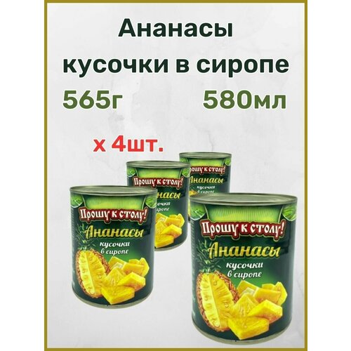 Ананасы кусочками в сиропе "Прошу к столу!", Таиланд, 580мл -4шт
