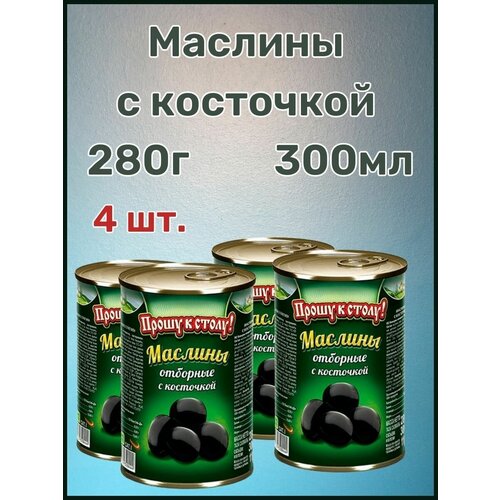 Маслины отборные с косточкой Прошу к столу 280г 4 шт.