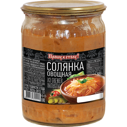 "Прошу к столу" Солнянка овощная из свежей капусты 500г ст/б 1шт