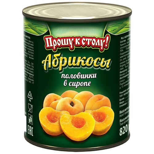 Абрикосы половинки в сиропе "Прошу к столу" 820 гр.1шт