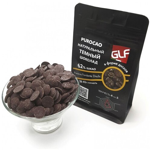 Темный шоколад Purocao (Пуракао) GLF 62% (39/41), пакет 200 гр