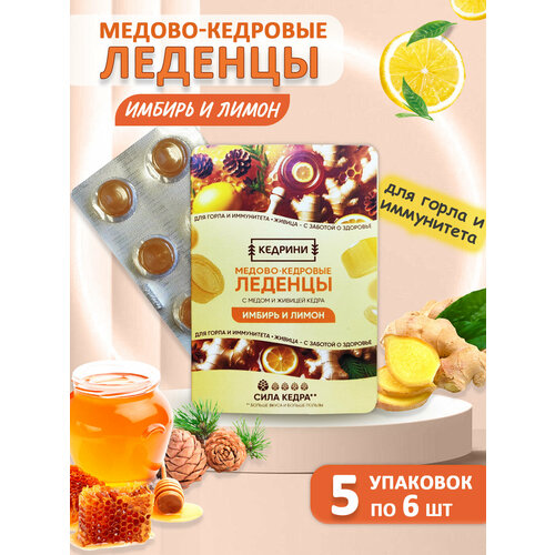 Леденцы медово-кедровые с лимоном и имбирем 6 шт (РадоГрад) 5 шт в наборе