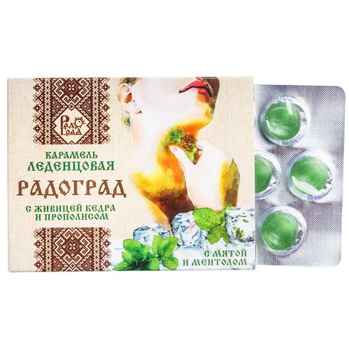 Леденцы с живицей кедра и прополисом без сахара (мята, ментол) 10 шт (РадоГрад) 5 шт в наборе