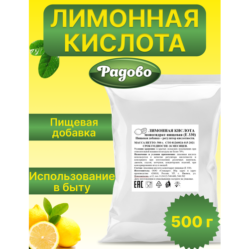 Лимонная кислота "Радово", 500г, для кулинарных и бытовых нужд