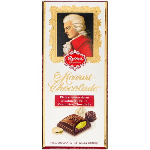 Шоколад Reber Mozart Chocolade Горький шоколад с фисташковым пралине, 100 г