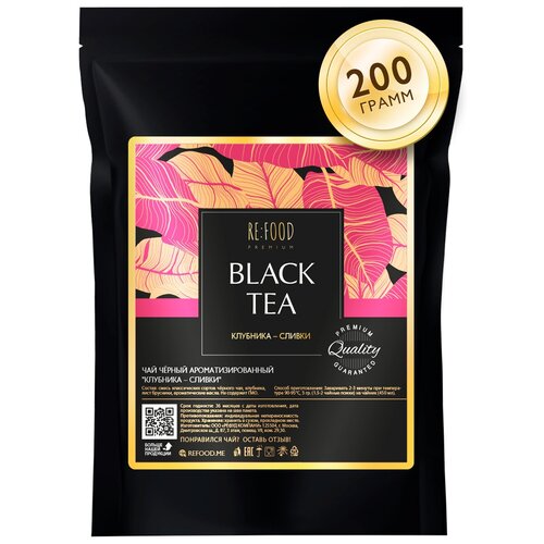 Чай Черный "Клубника — Сливки" PREMIUM 200 грамм RE:FOOD
