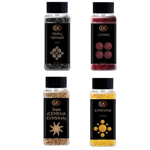 Набор специй Зира 70гр Куркума молотая 85гр Перец черный горошек 80гр Сумах 85гр