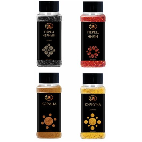 Набор приправ Корица молотая 75гр Куркума молотая 85гр Перец черный горошек 80гр Перец чили 48гр