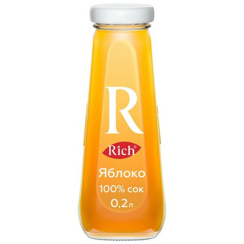 Сок Rich Яблоко, в стеклянной бутылке, без сахара, 0.2 л, 12 шт.