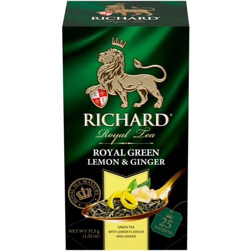 Чай RICHARD ROYAL GREEN LEMON & GINGER, зеленый чай c лимоном и имбирем, 25 сашетов