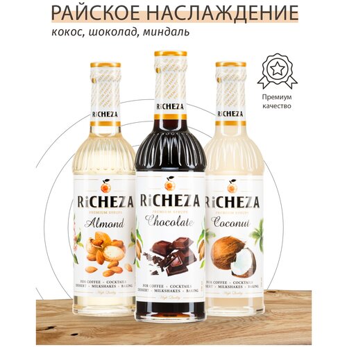 Набор сиропов для Капучино Richeza Ричеза 330 мл. Миндаль/Кокос/ Грецкий орех
