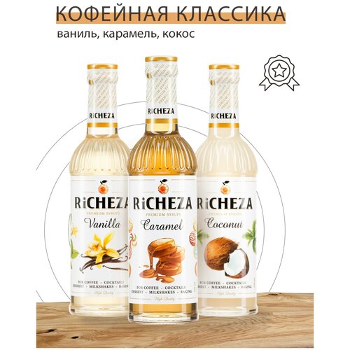 Классический набор сиропов для кофе Richeza Ричеза 330 мл. Карамаль/Ваниль/Кокос
