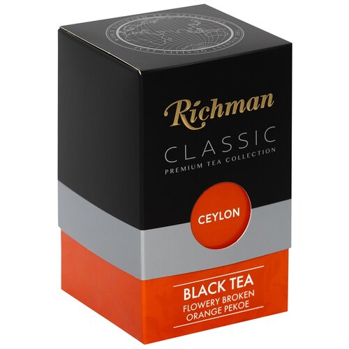 Чай Richman Classic черный среднелистовой, стандарт "Flowery Broken Orange Pekoe" FBOP 100г цейлон, картонная коробка