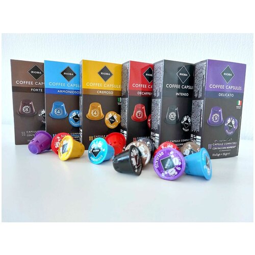 Набор кофейных капсул RIOBA / Капсулы для Nespresso / Кофе Риоба для Неспрессо / Italy / 66шт