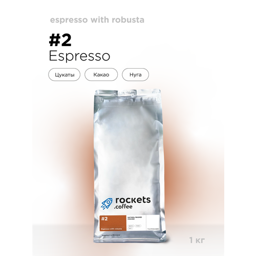 Кофе rockets.coffee Espresso #2, в зернах, средняя обжарка, смесь арабики, робусты, 1 кг