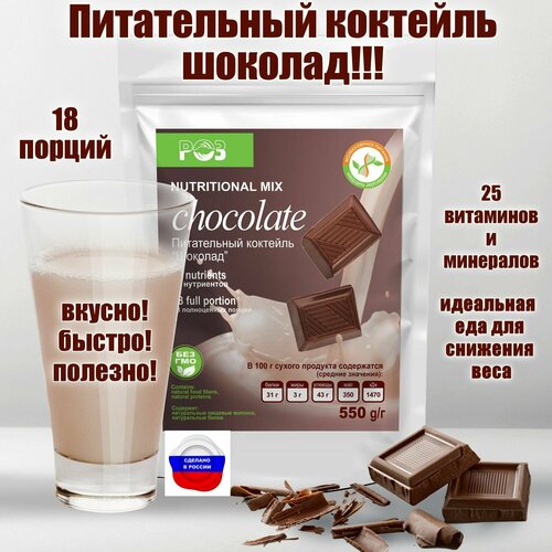 Питательный коктейль Шоколад, Родник здоровья, низкокалорийный белковый, для похудения, протеиновый, с витаминами и минералами