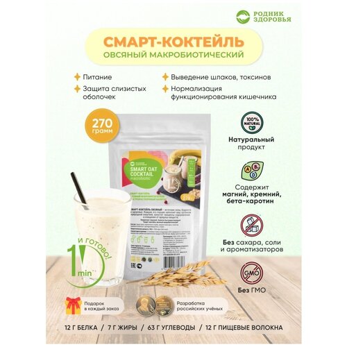 Родник Здоровья Смарт-Коктейль Овсяный. Быстрорастворимый. Макробиотический. Родник Здоровья 270 грамм