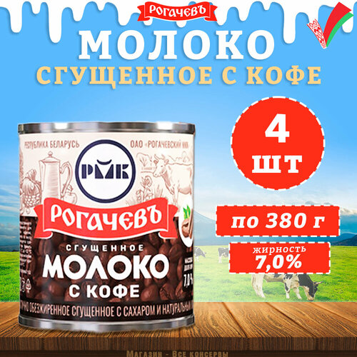Молоко сгущенное с кофе 7%, Рогачев, 4 шт. по 380 г