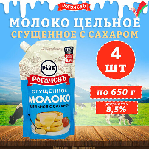 Молоко сгущенное с сахаром 8,5% дойпак ГОСТ Рогачев, 4 шт по 650 г