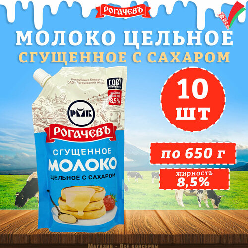 Молоко сгущенное с сахаром 8,5% дойпак ГОСТ Рогачев, 10 шт по 650 г