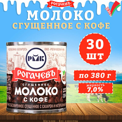 Молоко сгущенное с кофе 7%, Рогачев, 30 шт. по 380 г