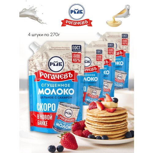 Молоко цельное сгущённое с сахаром рогачевъ 8,5% 270 г 4 шт