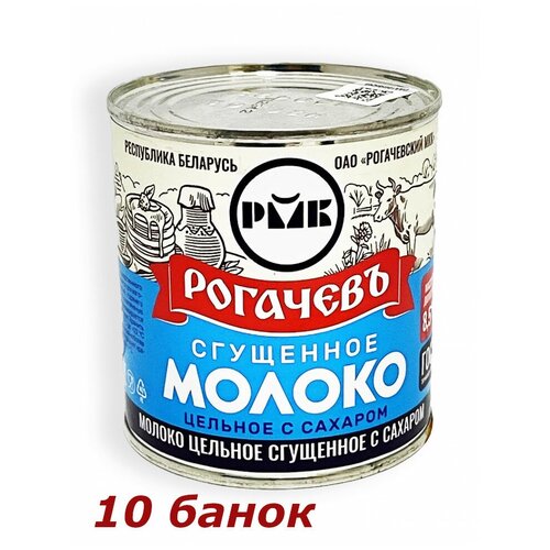 Молоко цельное сгущенное Рогачёвъ с сахаром 8,5% 380г ж/б (10 шт)