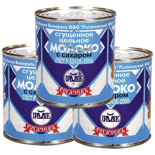 Молоко цельное сгущённое Рогачевъ, 3 шт. по 380 гр