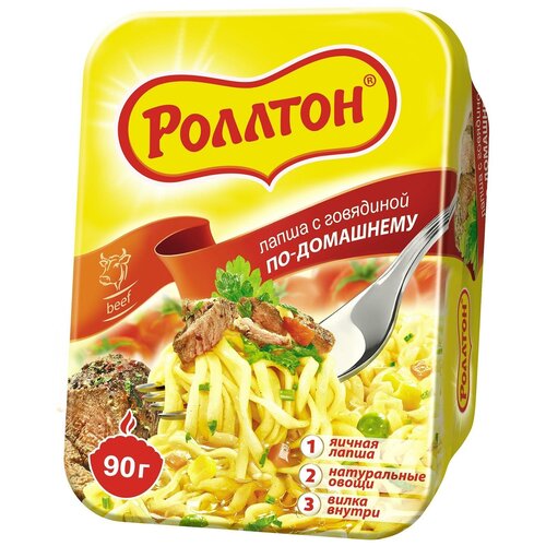 Лапша быстрого приготовления с Говядиной"по — домашнему" Роллтон лоток 90г. 24 шт.