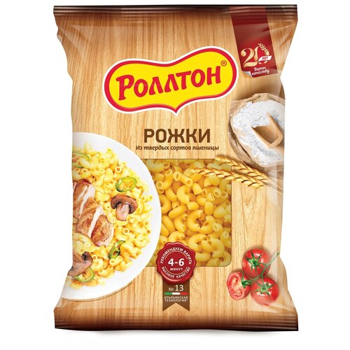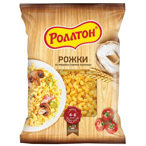 Макароны традиционные из твердых сортов пшеницы Рожки Роллтон 400г. 16 шт.