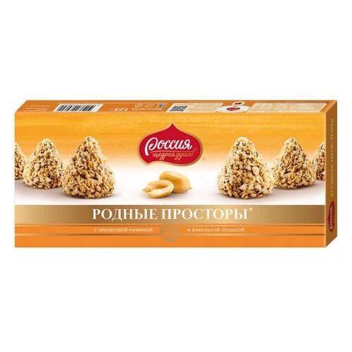 Конфеты в коробке "Родные Просторы" с арахисовой начинкой и вафельной крошкой 125г 2 шт