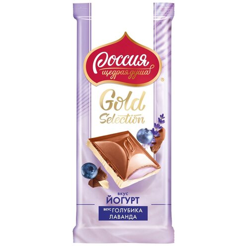 Молочный и белый шоколад "Россия" — щедрая душа! Gold Selection с начинкой с лавандой, со вкусом йогурта и голубики 82г