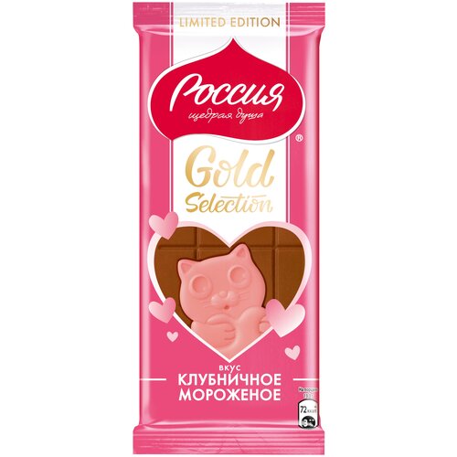 Молочный и белый шоколад «Россия» — Щедрая Душа! Gold Selection со вкусом «Клубничное Мороженое» 80 г