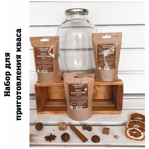Набор для приготовления домашнего кваса из 3 видов кваса (освежающий, окрошечный, купеческий)