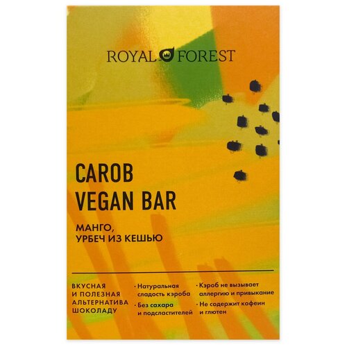 Веганский шоколад "Carob Vegan Bar" манго, урбеч из кешью (vegan chocolate) Royal Forest | Роял Форест 50г