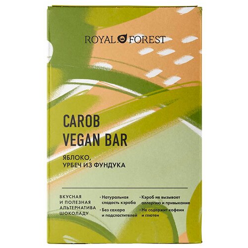 Веганский шоколад "Carob Vegan Bar" яблоко, урбеч из фундука (vegan chocolate) Royal Forest | Роял Форест 50г