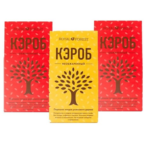 Набор Кэроба — обжаренный 2 шт 200 г и необжаренный 1 шт по 200 г, Royal Forest