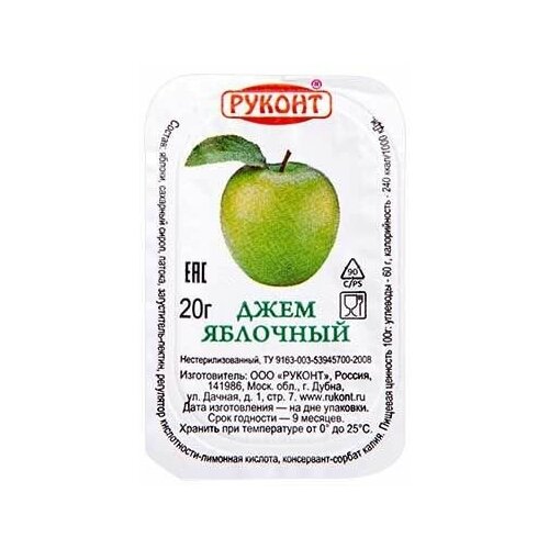 Джем порционный "Абрикос", спайка 20 шт. по 20 г, Руконт, Россия