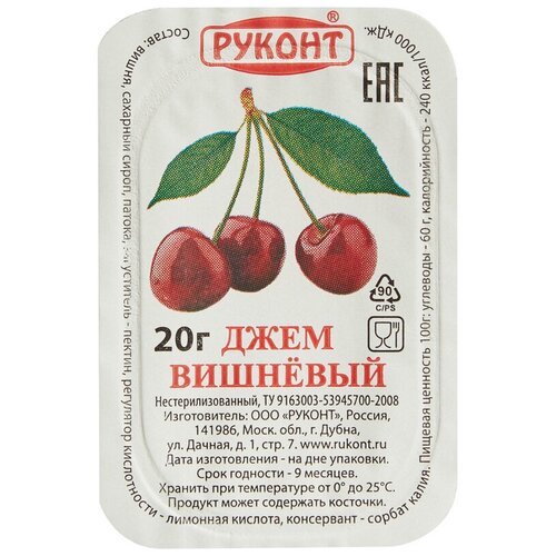 Джем Руконт вишневый порционный коробка 140 штук по 20 грамм
