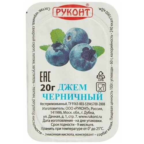 Джем Руконт черничный порционный коробка 140 штук по 20 грамм