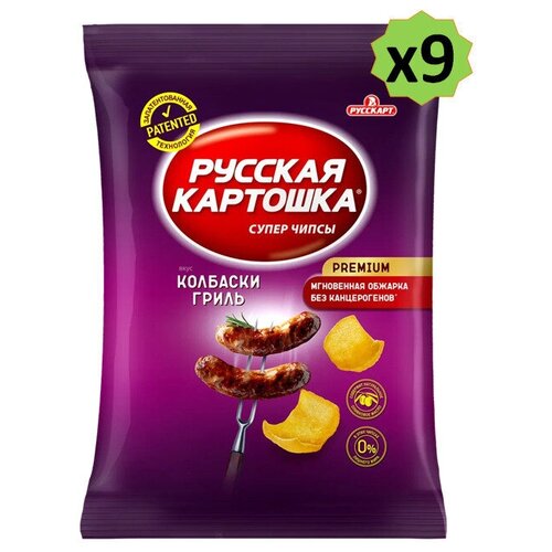 Чипсы Русская Картошка Колбаски гриль, 150 г х 9 шт