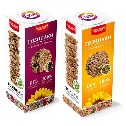 Гозинаки Русские традиции без сахара (с Изюмом и Арахисом + с Тыквенной семечкой), 210г х 2шт