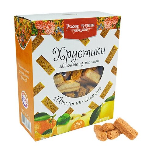 Хрустики яблочные из пастилы Русские традиции "Апельсин-лимон" (без сахара), 250г