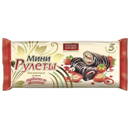 Русский бисквит Мини-рулеты Клубника со сливками, 175 г, 5 шт
