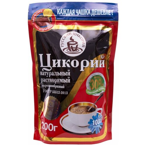 Цикорий РУССКИЙ ЦИКОРИЙ растворимый порошкообразный 200 г 1 шт. дой-пак