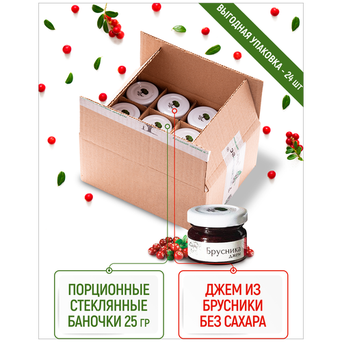 Джем "Русский лес" премиум Брусника. Порционные баночки 25 грамм х 24 шт./без сахара