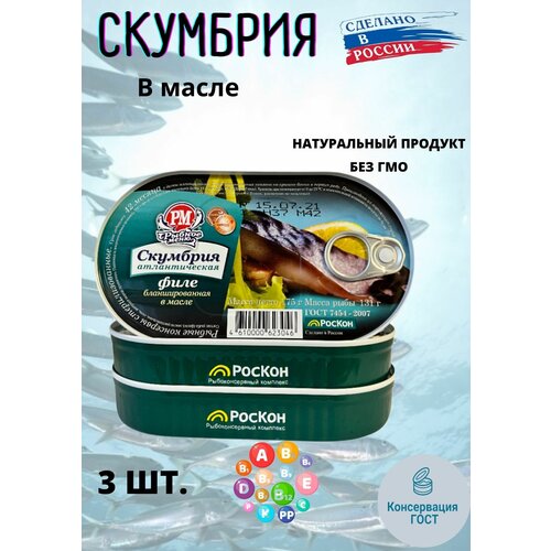 Скумбрия атлантическая в масле, филе бланшированная с ключем "Рыбное меню" премиум ГОСТ 175г 36шт