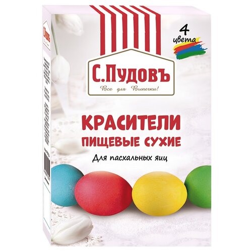 Набор Красители сухие для яиц (красный, желый, синий, зеленый) С.Пудовъ, 20 г