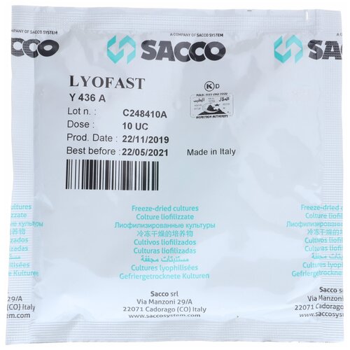 Закваска для йогурта Lyofast Y 436 A 10 UC (на 250 — 2000 л, Sacco)