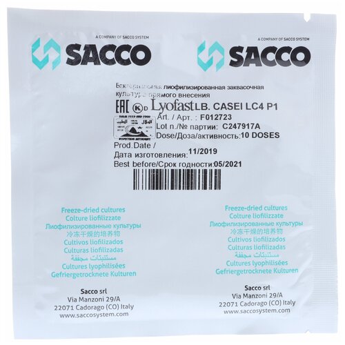 Закваска для сыра Lyofast Lactobacillus casei LC 4 P1 10 D (на 1000 л, Sacco)